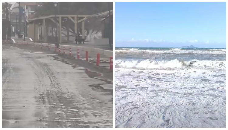 Στο «έλεος» των ανέμων η Μεσαρά: Φουρτουνιασμένη η θάλασσα στον Κόκκινο Πύργο - Άμμος και φερτά υλικά στον δρόμο! (video)