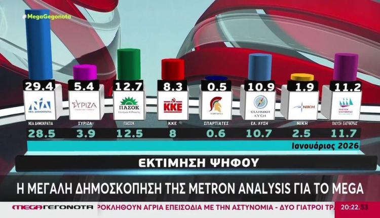 Η μεγάλη δημοσκόπηση του MEGA Ελλάδα iraklionews.gr 20/02/2026 00:03 Share it! FacebookTwitter Η μεγάλη δημοσκόπηση της Metron Analysis για το MEGA Ακολουθήστε το Iraklionews σε Google News και Facebook Megaδημοσκόπηση Share it! FacebookTwitter