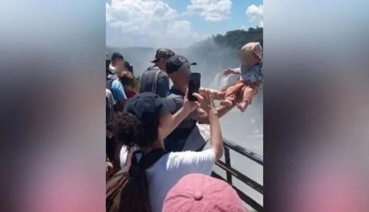 Το περιστατικό, που καταγράφηκε σε βίντεο το απόγευμα της ίδιας ημέρας, έκανε γρήγορα τον γύρο των μέσων κοινωνικής δικτύωσης, προκαλώντας κύμα αντιδράσεων. Σύμφωνα με τη βραζιλιάνικη εφημερίδα O Globo και άλλα νοτιοαμερικανικά μέσα ενημέρωσης, ο άνδρας κρατούσε το μωρό έξω από πεζογέφυρα και προστατευτικό κιγκλίδωμα, στην «Λαιμό του Διαβόλου» (Garganta del Diablo), τον μεγαλύτερο και εντυπωσιακότερο καταρράκτη του συμπλέγματος.