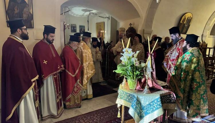 Ο Σεβασμιώτατος χοροστάτησε κατά τον Όρθρο και τέλεσε τη Θεία Λειτουργία, συμπαραστατούμενος από τον Πανοσιολογιώτατο Αρχιμανδρίτη Αθανάσιο Καραχάλιο, Πρωτοσύγκελλο της Ιεράς Μητροπόλεως Λάμπης, Συβρίτου και Σφακίων, τον Πανοσιολογιώτατο Αρχιμανδρίτη Βασίλειο Παπαδάκη, Ηγούμενο της Ιεράς Μονής Αγίας Αναστασίας της Ρωμαίας Ρεθύμνης και Ιεροκήρυκα της τοπικής Μητροπόλεως, καθώς και άλλους κληρικούς.