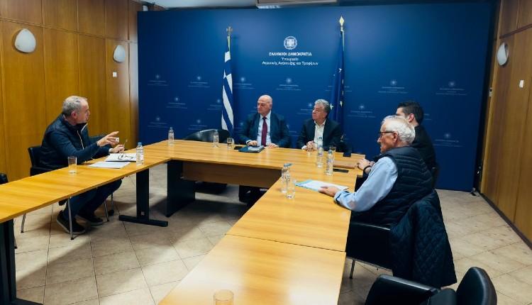 Στη συνάντηση εργασίας μετείχαν από την Περιφέρεια, ο Αντιπεριφερειάρχης Αγροτικής Οικονομίας Σταύρος Τζεδάκης και ο Γενικός Διευθυντής Αγροτικής Οικονομίας και Ανάπτυξης Κώστας Φωτάκης.