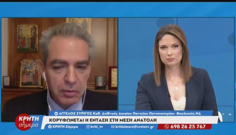 Ο Καθηγητής Διεθνούς Δικαίου και Εξωτερικής Πολιτικής – Βουλευτής ΝΔ , Άγγελος Συρίγος καλεσμένος στο Κρήτη Σήμερα αναφέρεται στα επικρατέστερα σενάρια σχετικά με τον θάνατο του Χαμενεϊ αλλά και το πως θα εξελιχθεί η ένταση στη Μέση Ανατολή.