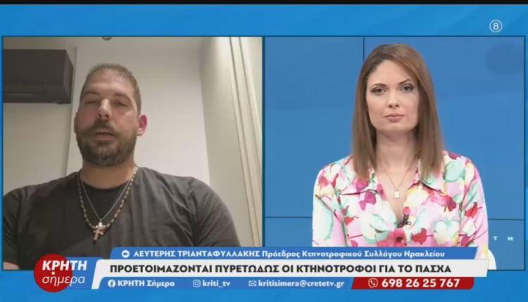 Ο Πρόεδρος Κτηνοτροφικού Συλλόγου Ηρακλείου , Λευτέρης Τριανταφυλλάκης καλεσμένος στο Κρήτη Σήμερα αναφέρει τα προληπτικά μέτρα βιοασφάλειας στην Κρήτη και τους απολυμαντικούς σταθμούς , την ίδια ώρα που έχει ξεκινήσει η αντίστροφη μέτρηση για το Πάσχα.