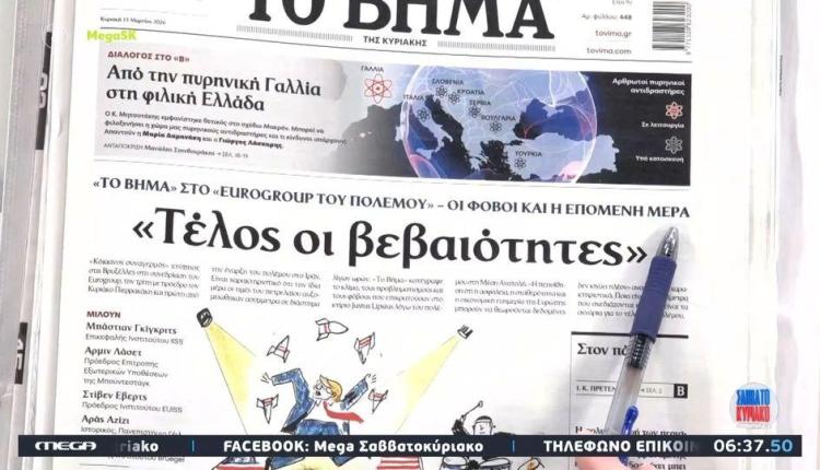 Τα πρωτοσέλιδα των εφημερίδων σήμερα Ελλάδα iraklionews.gr 15/03/2026 09:51 Share it! FacebookTwitter . Τα πρωτοσέλιδα των εφημερίδων σήμερα 15 Μαρτίου 2026. Ακολουθήστε το Iraklionews σε Google News και Facebook εφημερίδωνπρωτοσέλιδα Share it! FacebookTwitter