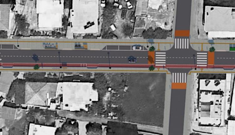 • Η διαπλάτυνση πεζοδρομίων και η διαμόρφωση ποδηλατόδρομου στη νοτιοδυτική πλευρά του δρόμου.