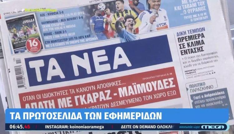 Τα πρωτοσέλιδα των εφημερίδων σήμερα