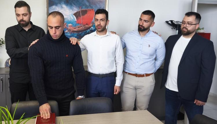 Πέντε νέοι δημοτικοί αστυνομικοί ορκίστηκαν στο Δημαρχείο Γουρνών, παρουσία του Δημάρχου Χερσονήσου κ. Ζαχαρία Δοξαστάκη, σε μια λιτή και συγκινητική τελετή με τη συμμετοχή των οικογενειών τους.