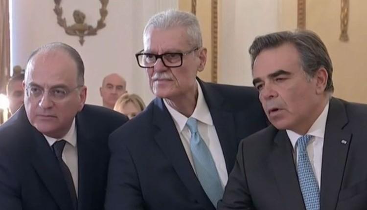 Στην τελετή ορκωμοσίας, τα νέα κυβερνητικά στελέχη που ανέλαβαν καθήκοντα είναι ο Μαργαρίτης Σχοινάς, ο Ευάγγελος Τουρνάς και ο Μακάριος Λαζαρίδης. Οι τοποθετήσεις τους έρχονται σε συνέχεια των αποχωρήσεων των κ.κ. Τσιάρα, Κεφαλογιάννη και Βαρτζόπουλου.