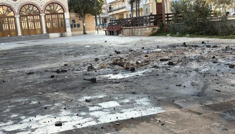 Σε σημεία γύρω από εκκλησίες εντοπίζονται καμένα φανάρια, δέντρα, φωτιστικά, φθορές στο οδόστρωμα, καθώς και ολοσχερώς κατεστραμμένοι κάδοι απορριμμάτων. Παράλληλα, γίνεται αναφορά για χρήση αυτοσχέδιων μηχανισμών και εύφλεκτων υλικών κατά τη διάρκεια της νύχτας της Ανάστασης.