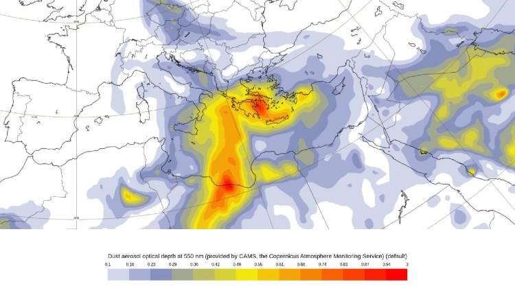 Σύμφωνα με τον μετεωρολόγο Γιώργο Τσατραφύλλια, νέο κύμα μεταφοράς σκόνης βρίσκεται ήδη σε εξέλιξη και θα διατηρηθεί έως τα μέσα της εβδομάδας, επηρεάζοντας μεγάλο μέρος της χώρας.