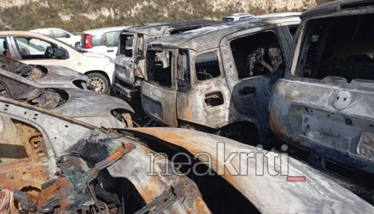Πύρινη κόλαση σε επιχείρηση στο Ηράκλειο: «Ξεκάθαρος εμπρησμός» η πυρπόληση των οχημάτων, καταγγέλλει ο «ΗΝΙΟΧΟΣ»