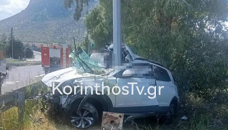Η άτυχη οδηγός εγκλωβίστηκε στο όχημα, με αποτέλεσμα να χρειαστεί η επέμβαση της Πυροσβεστικής Υπηρεσίας Κορίνθου για τον απεγκλωβισμό της.