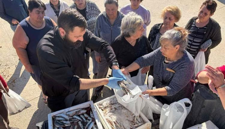 Αρκαλοχώρι: Η τοπική Εκκλησία μοίρασε ψάρια στις οικογένειες που μένουν στα κοντέινερ