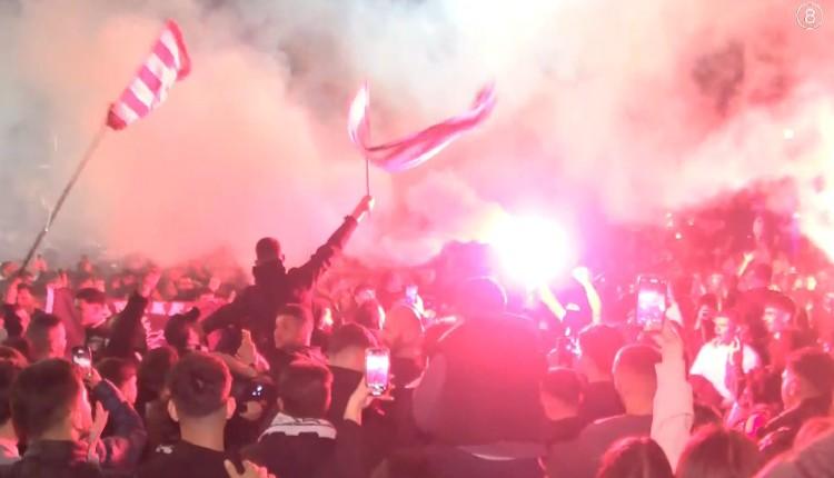 Από τα πρώτα κιόλας λεπτά μετά τη λήξη του αγώνα, εκατοντάδες φίλαθλοι συγκεντρώθηκαν στα «Λιοντάρια», που αποτέλεσαν το βασικό σημείο συνάντησης, καθώς πολλοί είχαν παρακολουθήσει τον τελικό σε καταστήματα της περιοχής. Πολύ γρήγορα, το σημείο γέμισε ασφυκτικά, με τον κόσμο να πανηγυρίζει τη μεγάλη επιτυχία.