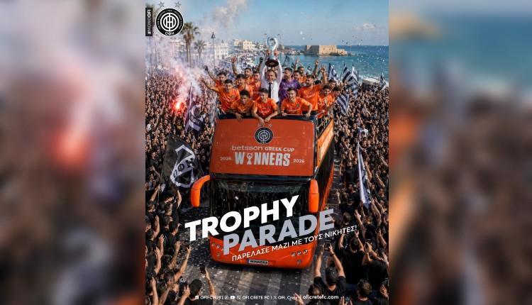 Σε ρυθμούς απόλυτης γιορτής κινείται το Ηράκλειο, με την ΠΑΕ ΟΦΗ να καλεί τον κόσμο στους δρόμους για να πανηγυρίσει την κατάκτηση του Κυπέλλου Ελλάδας 2026.