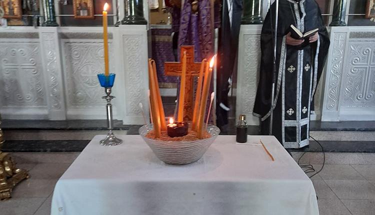 Στον ιερό ναό Αγίου Τίτου Τυμπακίου όπως και σε όλες τις εκκλησίες ψάλλεται αυτή την ώρα το μυστήριο του ευχελαίου .