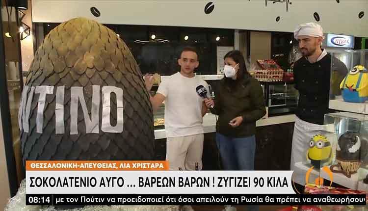 Σ΄ένα ζαχαροπλαστείο στη Θεσσαλονίκη έφτιαξαν ένα τεράστιο σοκολατένιο αυγό …για κλήρωση!