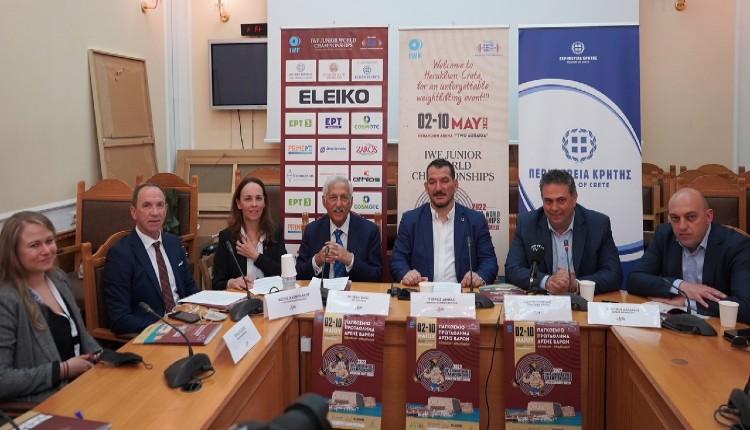 Στη συνέντευξη Τύπου παρευρέθηκαν ο Πρόεδρος της Παγκόσμιας Ομοσπονδίας Άρσης Βαρών Dr Michael Irani, ο Γενικός Γραμματέας της Ελληνικής Ομοσπονδίας Άρσης Βαρών Πύρρος Δήμας, ο Εντεταλμένος Σύμβουλος Αθλητισμού της Περιφέρειας Κρήτης Γιώργος Πιτσούλης, ο Αντιδήμαρχος Κυκλικής Οικονομίας, Περιβάλλοντος και Αθλητισμού του Δήμου Ηρακλείου Κωνσταντίνος Βαρδαβάς, ο Διευθυντής της Διοργάνωσης του Παγκοσμίου Πρωταθλήματος Φώτης Καϋμενάκης και η υπεύθυνη Επικοινωνίας της Παγκόσμιας Ομοσπονδίας Άρσης Βαρών Reka Foldesi.