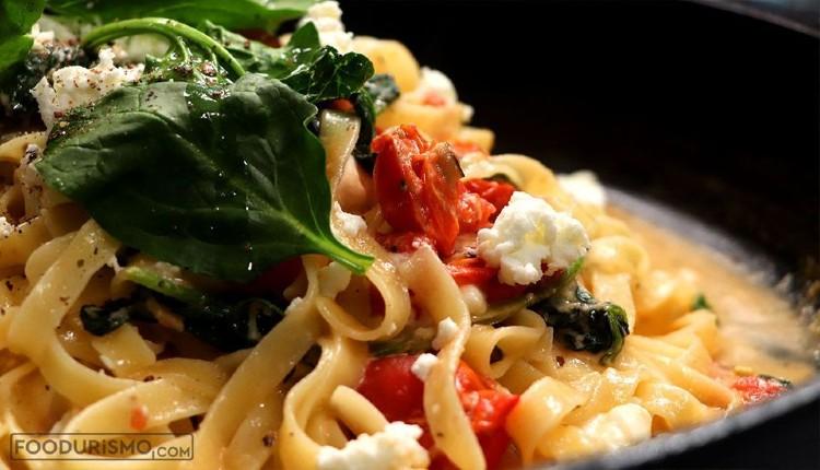Συνταγή για ταλιατέλες με σπανάκι και ντοματίνια σε σάλτσα φέτας