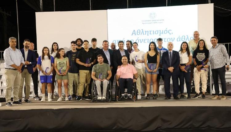 Με τη συγκινητική εκδήλωση – κατάθεσης ψυχής 20 σπουδαίων Κρητών αθλητών (Ολυμπιονικών, Παραολυμπιονικών και διεθνών Πρωταθλητών), που περιέγραψαν στο κατάμεστο Karteros Sports Beach Center τη δική τους αθλητική διαδρομή στην εκδήλωση «Αθλητισμός, από το όνειρο στον άθλο», κορυφώθηκε στις Εθνικές Παράκτιες Αθλητικές Εγκαταστάσεις η τριήμερη αθλητική γιορτή.