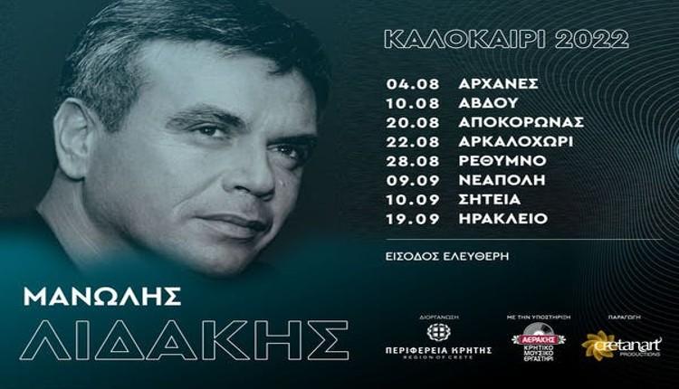 Μανώλης Λιδάκης: Οι εμφανίσεις του το φετινό καλοκαίρι στην Κρήτη